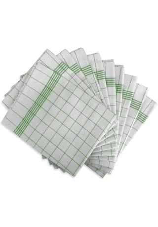 Diese hochwertigen Geschirrtücher zählen zu den meist gekauften Küchentextilien im Gastronomiebereich. Ess- und Kochgeschirr, Gläser und Besteck lassen sich mit diesen Geschirrhandtüchern effizient abtrocknen. Zudem sorgt der spezielle Naturfaser-Mix der Classic Geschirrtücher für stetige Reißfestigkeit. Classic Geschirrhandtücher behalten auch nach vielen 60°-Wäschen das eingewebte Muster in Original-Farbtiefe bei, da das verwendete Garn gefärbt ist. Diese Küchenhelfer finden in Gastronomiebetrieben genauso ihre Verwendung wie in Privathaushalten oder beim Camping. Alle Geschirrtücher erreichen Ihre volle Saugkraft erst nach einigen Wäschen, da der Garn erst ein paar Mal quellen muss um die volle Saugfähigkeit erreichen zu können. Details: • Klassisches Motiv • Bleicht nicht aus – dank Garnfärbung • Reißfest • Dauerhaft strapazierfähig Material: 100 % Baumwolle