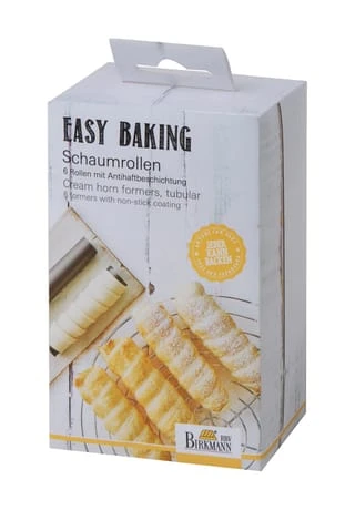 RBV Birkmann Schaumrollen Easy Baking. Typ: Creme-Hornform, Form: Rund, Art der Oberfläche: Flache Oberfläche. Höhe: 130 mm, Backformdurchmesser: 2 cm. Menge pro Packung: 6 Stück(e), Verpackungsart: Box