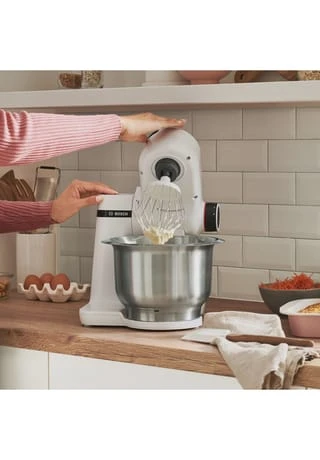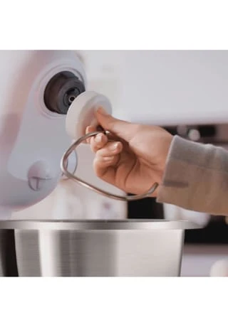 Genießen Sie das Backen vom ersten Moment an. Mit dem leistungsstarken Motor können Sie große Mengen an Mehl und Zutaten zubereiten – mühelos und schnell. Kein Warten, kein Nacharbeiten, keine Kompromisse. Die Maschine verarbeitet bis zu 2,4 kg Rührteig oder 1,7 kg Hefeteig. Die 3D-PlanetaryMixing-Technologie ermöglicht ein schnelles und perfektes Vermischen sämtlicher Zutaten. Zudem besitzt der Backhelfer gleich 4 Arbeitsstufen für die großen Aufgaben in der Küche. Die elektronische Drehzahl-Regelung bietet eine konstante Drehzahl während des Arbeitsvorgangs. Das mitgelieferte Patisserie-Set umfasst einen Schlagbesen, einen Rührbesen und einen Knethaken fürs perfekte Backen. Es besteht aus Edelstahl und ist damit spülmaschinengeeignet. Saugfüße sorgen für mehr Stabilität, und der Überlastungsschutz bietet einen hohen Grad an Sicherheit.