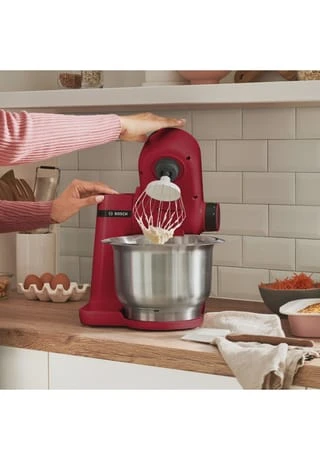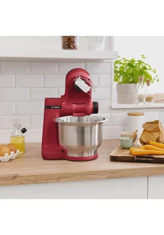 Die kompakte Küchenmaschine mit vielseitigen Einsatzmöglichkeiten: Der starke 700 Watt Bosch Motor ist ideal für schnelle Back- und Kochergebnisse, auch bei schweren Teigen. Die praktische 3,8l Schüssel aus Edelstahl mit spezieller Innenform für optimale Teigzubereitung ist für bis zu 2,4kg Rührteig oder 1,7kg Hefeteig geeignet. Das 3D-Planeten-Rührwerk vermischt sämtliche Zutaten perfekt und schnell in 4 Arbeitsstufen. Ein Patisserie-Set mit Schlagbesen, Rührbesen und Knethaken, für perfektes Backen, ist im Lieferumfang enthalten.