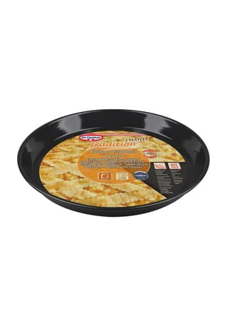 Das runde Dr. Oetker Kuchen- und Pizzablech aus dem Sortiment “Tradition Emaille” mit schnitt- und kratzfester Quarz-Emaille-Oberfläche lässt das Herz eines jeden Kuchen- und Pizza-Fans höher schlagen. Es verfügt über eine ausgezeichnete Wärmeleitung, die für beste Backergebnisse sorgt. Zudem ist das glasglatte Backblech Fruchtsäure und hitzebeständig bis +400 Grad Celsius und kann nach dem Gebrauch in die Spülmaschine gegeben werden. Das emaillierte, runde Kuchen- und Pizzablech für beste Backergebnisse. Absolut schnitt- und kratzfest.