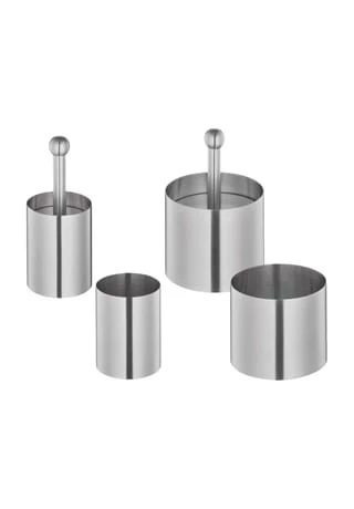 2 Dessertringe Ø 7,5 cm, 2 Dessertringe Ø 5,0 cm, 1 Auslöser groß, 1 Auslöser klein