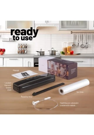 Lauben Vacuum Sealer Sparen Sie Zeit, Platz und schützen Sie den Planeten Die Situation, in der wir nicht alles verbrauchen, was wir im Kühlschrank haben und wir unnötig Essen wegschmeißen, kennt wahrscheinlich jeder. Eine einfache und dabei sehr effektive Lösung ist das Vakuumieren. Der Lauben Vacuum Sealer VS01 verlängert die Haltbarkeit von Lebensmitteln um das Fünffache. Die Methode des Vakuumierens dank dem Absaugen der Luft mit Hilfe des Vakuumiergerätes verlangsamt den Prozess der Oxidation markant, im Laufe dessen die Lebensmittel verderben. Mit dem Lauben Vacuum Sealer VS01 werden Lebensmittel länger haltbar. Negative Einflüsse von Feuchtigkeit oder Bakterien im Kühlschrank, die zur Veränderung der Farbe, des Geschmacks und vor allem der Gesamtqualität von Lebensmitteln beitragen werden verhindert. Die Speisen halten dank der speziellen Folie, die im Lieferumfang enthalten ist, viel länger im Kühlschrank oder im Gefrierschrank. Der gesamte Prozess ist sehr einfach, zur Bedienung des Vakuumiergerätes dienen nur vier Tasten. Das Vakuumiergerät wird zu einem perfekten Helfer, wenn Sie mit der beliebten Sous Vide Methode kochen oder zum Beispiel Steaks für überraschenden Besuch zubereiten wollen. Verlängert die Haltbarkeit von Lebensmitteln Machen Sie aus dem Lauben Vacuum Sealer VS01 einen alltäglichen Helfer im Kampf gegen die Verschwendung von Lebensmitteln. Das Vakuumiergerät kommt mit allen Lebensmitteln zurecht, die Sie im Kühlschrank haben. Es schafft feuchte, trockene, weiche und auch harte Lebensmittel, es genügt das richtige Programm mit der jeweiligen Taste zu wählen. So können Sie Gemüse, Fleisch oder Gebäck, aber auch Suppen oder Geburtstagstorten länger haltbar machen. Kinderleichte Bedienung Die Bedienung des Lauben Vacuum Sealer VS01 ist sehr einfach und kinderleicht. Für die Wahl des richtigen Prozesses dienen 4 Tasten und Sie können selber einstellen, welche Art von Lebensmitteln Sie vakuumieren wollen. Um mit dem Vakuumierungsprozess zu beginnen, dient die Taste Vacuum. Die Folie, die im Lieferumfang enthalten ist, versiegeln Sie dann einfach mit der Taste Seal. All-in-one Mit dem Vacuum Sealer VS01 haben Sie alles, was Sie zum Vakuumieren von Lebensmitteln brauchen, Sie müssen keine weiteren Geräte kaufen. In der Packung finden Sie auch fünf Meter der Vakkumierfolie Lauben Sous Vide Foil 2805. Bestandteil des Vakuumiergerätes ist auch ein integriertes Folienschneidegerät, mit dem Sie die benötigte Menge an Folie abschneiden und so einen Vakuumierbeutel nach Maß haben. Das Vakuumiergerät saugt die Luft aus dem Beutel und versiegelt die Folie. Sie müssen nur noch die Lebensmittel an einem kühlen Ort aufbewahren. Danach sind die Lebensmittel jederzeit verwendbar.