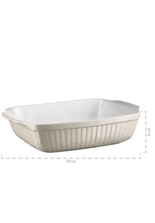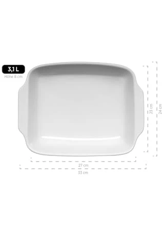 Diese vielseitig einsetzbare eckige Auflaufform aus dickwandiger Keramik macht dank ihres wunderschönen Retro-Designs nicht nur in Ihrem Backofen, sondern auch auf Ihrem Esstisch eine hervorragende Figur.Die Auflaufformen der Serie Kitchen Time sind aus hochwertigem Steinzeug (einer besonders harten Form der Keramik) gefertigt und dadurch äußerst pflegeleicht. Im Gegensatz zu Glasformen bleibt die Glasur von Keramikformen dauerhaft schön, da keine Lebensmittelrückstände eingebrannt werden. Im Gegensatz zu beschichteten metallenen Formen wiederum enthält glasierte Keramik keine Schadstoffe, die bei hohen Temperaturen ausgasen können. Außerdem ist glasierte Keramik absolut kratz- und schnittfest und leitet die Wärme Ihrer Speisen deutlich langsamer nach außen ab als etwa Aluminium. Bitte beachten Sie: Um eine objektive Vergleichbarkeit sicherzustellen, beziehen sich unsere Füllmengenangaben auf eine randvolle Befüllung. Vermeiden Sie Temperaturschocks, da die Formen ansonsten brechen könnten (etwa, wenn Sie diese direkt aus dem heißen Backofen auf einer kalten Stein-Arbeitsfläche platzieren). Dieses Set wird in einer vielfach auf Bruchsicherheit getesteten Versandverpackung versendet. Abmessungen außen 33 cm lang, 24 cm breit, 8 cm hoch innen 27 cm lang, 23 cm breit, 7 cm hoch
